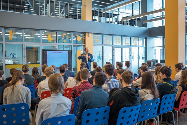 On March 22nd, 2018, lectures and a teleconference with specialists from the European Organization for Nuclear Research (CERN) were held at NUST MISIS. Lyceum and gymnasium students, as well as students from schools with advanced physics & mathematics programs learned how the Large Hadron Collider helps us study the properties of the Universe.