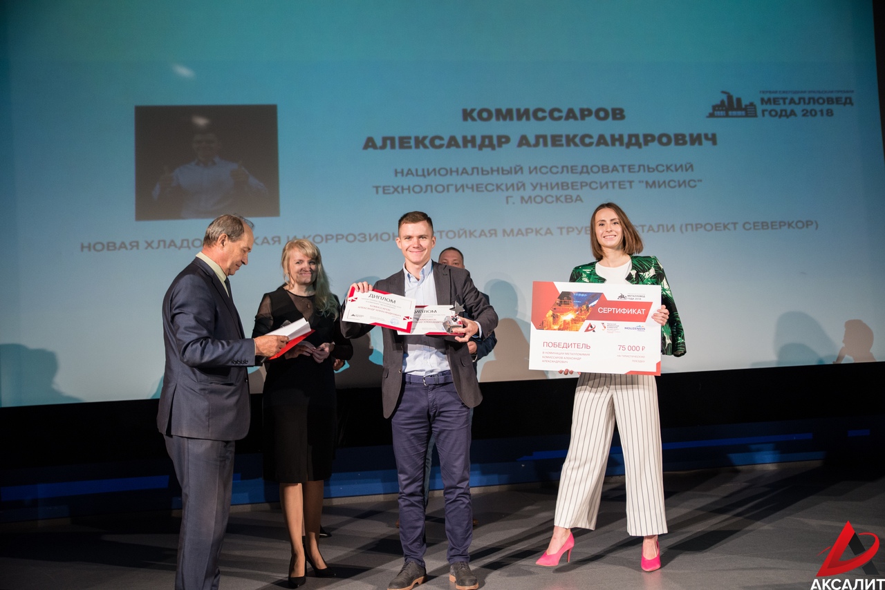 NUST MISIS submitted its project “A New Cold- and Corrosion-Resistant Grade of Pipe Steel” (“SeverCorr” project) in the “Metal Chemistry” category. The competition’s Expert Committee highly valued the work, naming it the winner in its category. PhD Alexander Komissarov, one of the co-authors and developers of the technology and the head of the NUST MISIS Laboratory of Hybrid Nanostructured Materials, received the title of “Metallurgist of the Year”.