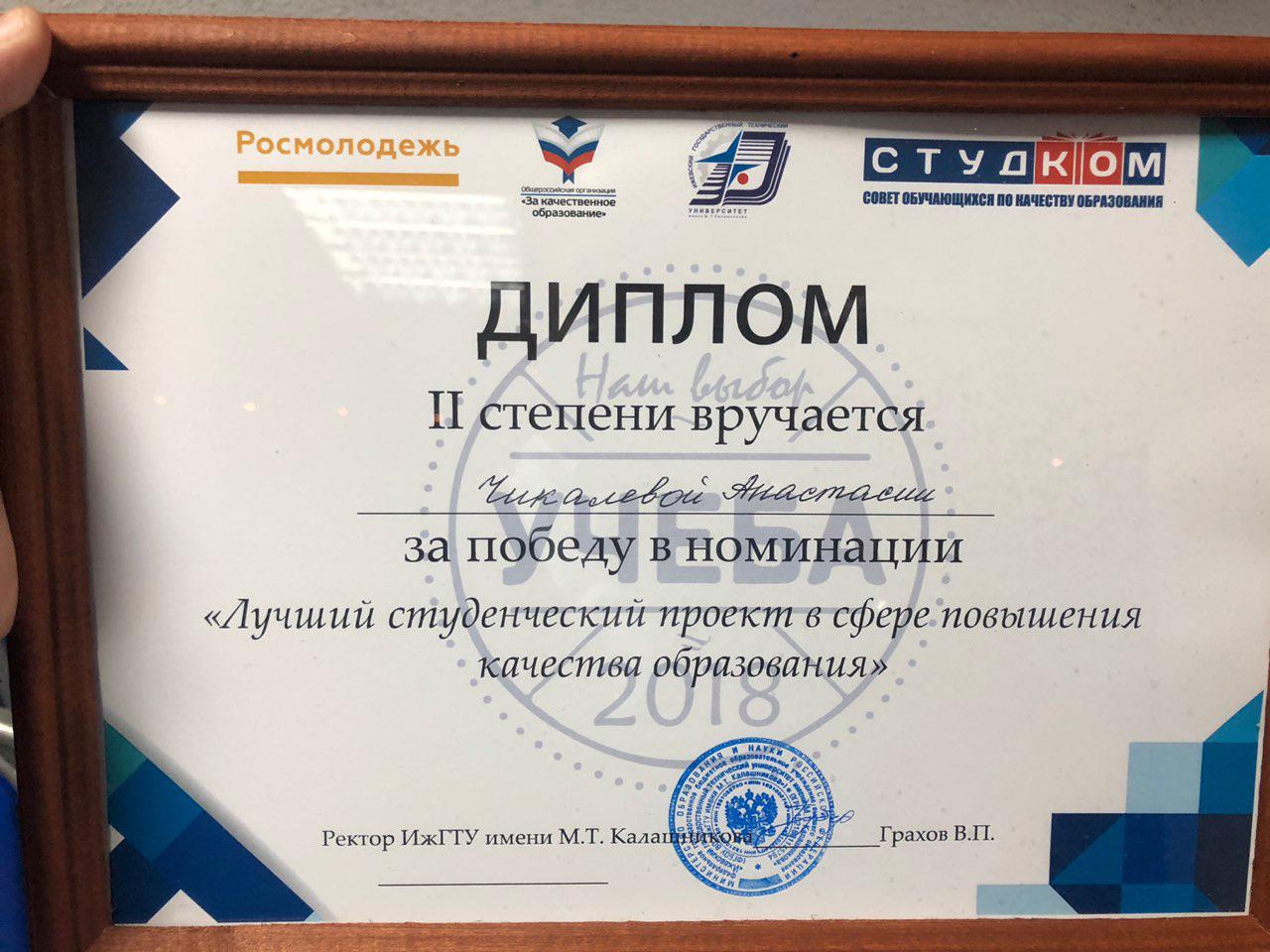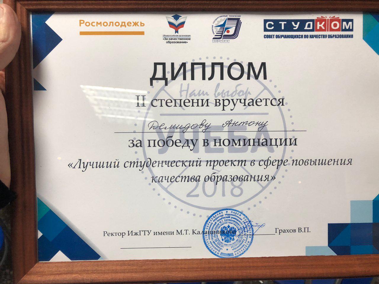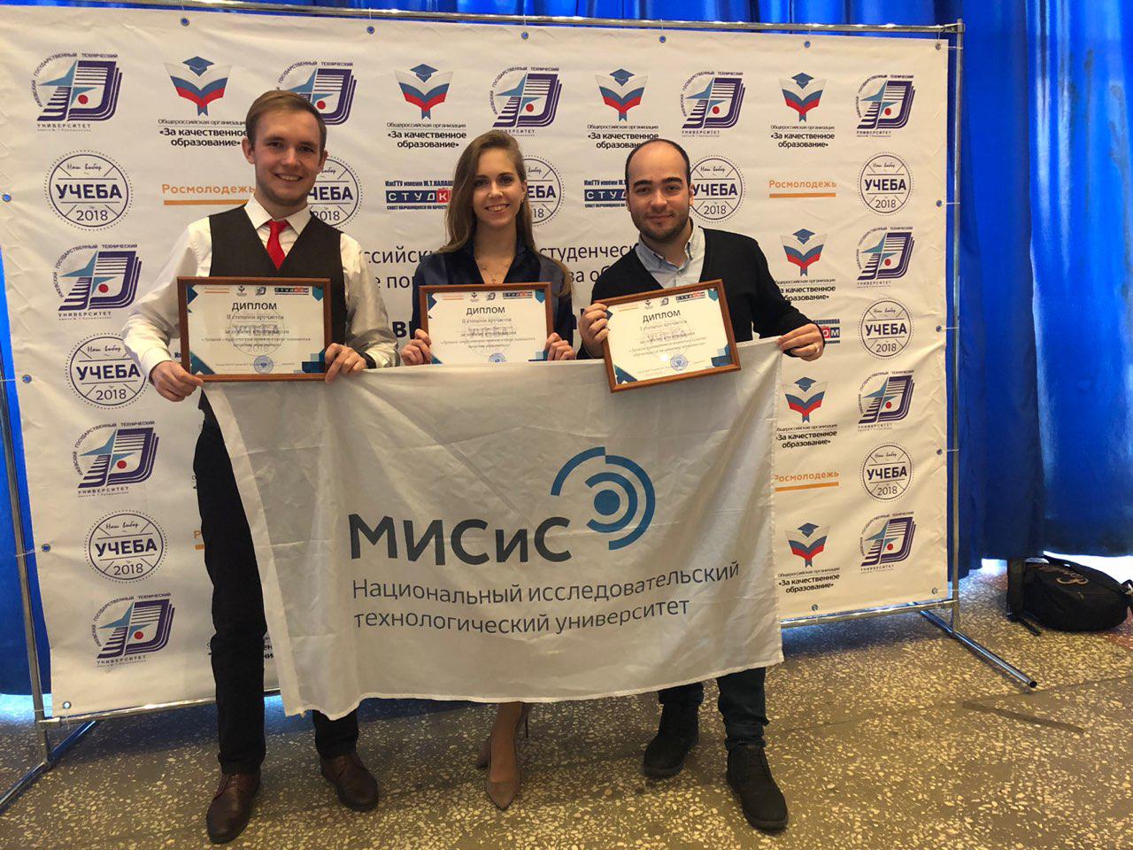 From November 21st to 23rd, 2018, “Studying is our Choice”, the all-Russian competition for student projects on improving the quality of education, was held in Izhevsk. The NUST MISIS “Open Rectorate” project took 2nd place in the “Best Project” nomination, and Gleb Uzunov, head of the NUST MISIS Student Council, took 1st place in the “Best Leader” nomination.